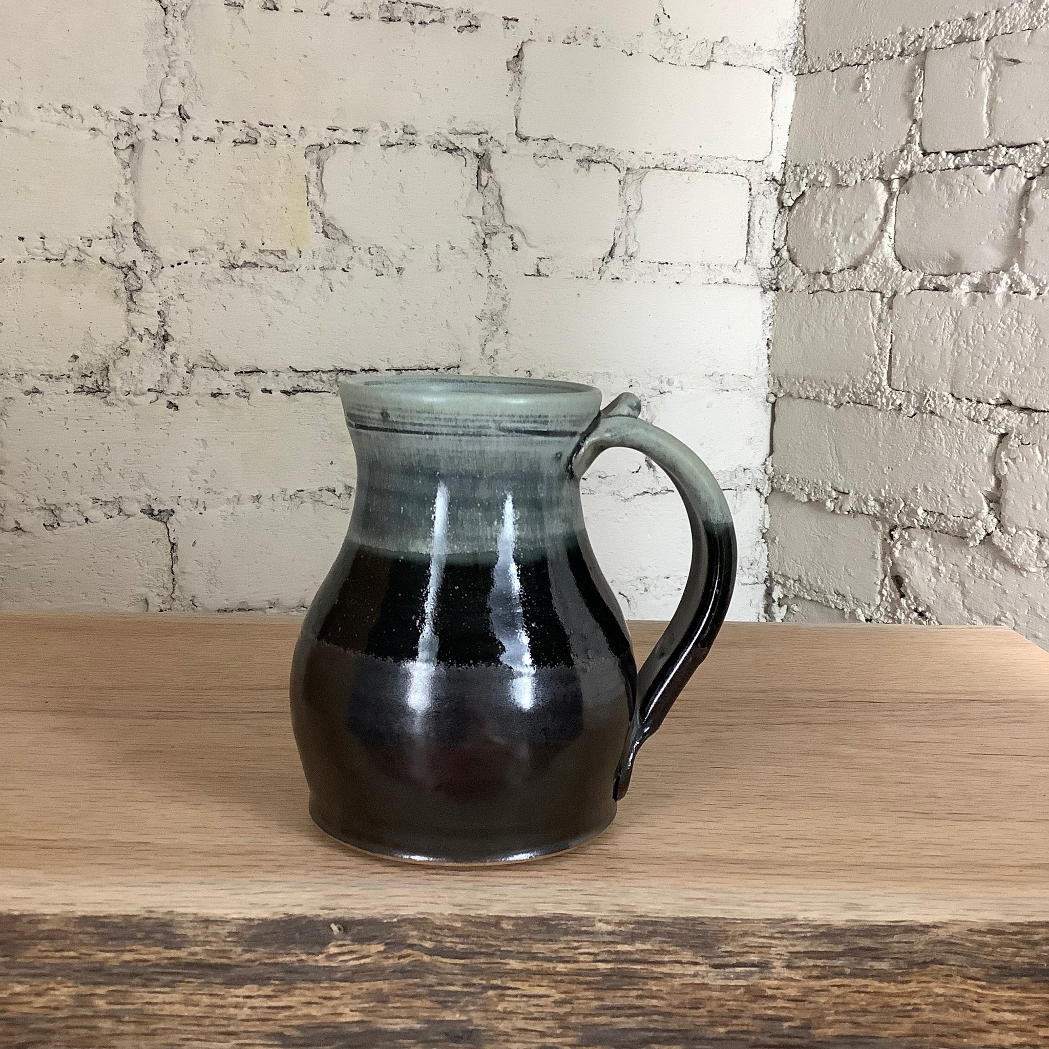 This mug was fired onsite in our gas kiln at Goshen’s historic Old Bag Factory. We begin the firing in the evening and leave it to warm up overnight. In the morning, we raise the temperature to 2100 F, then perform a series of intentional temperature holds and decreases throughout the day to affect the color quality of the pieces within.