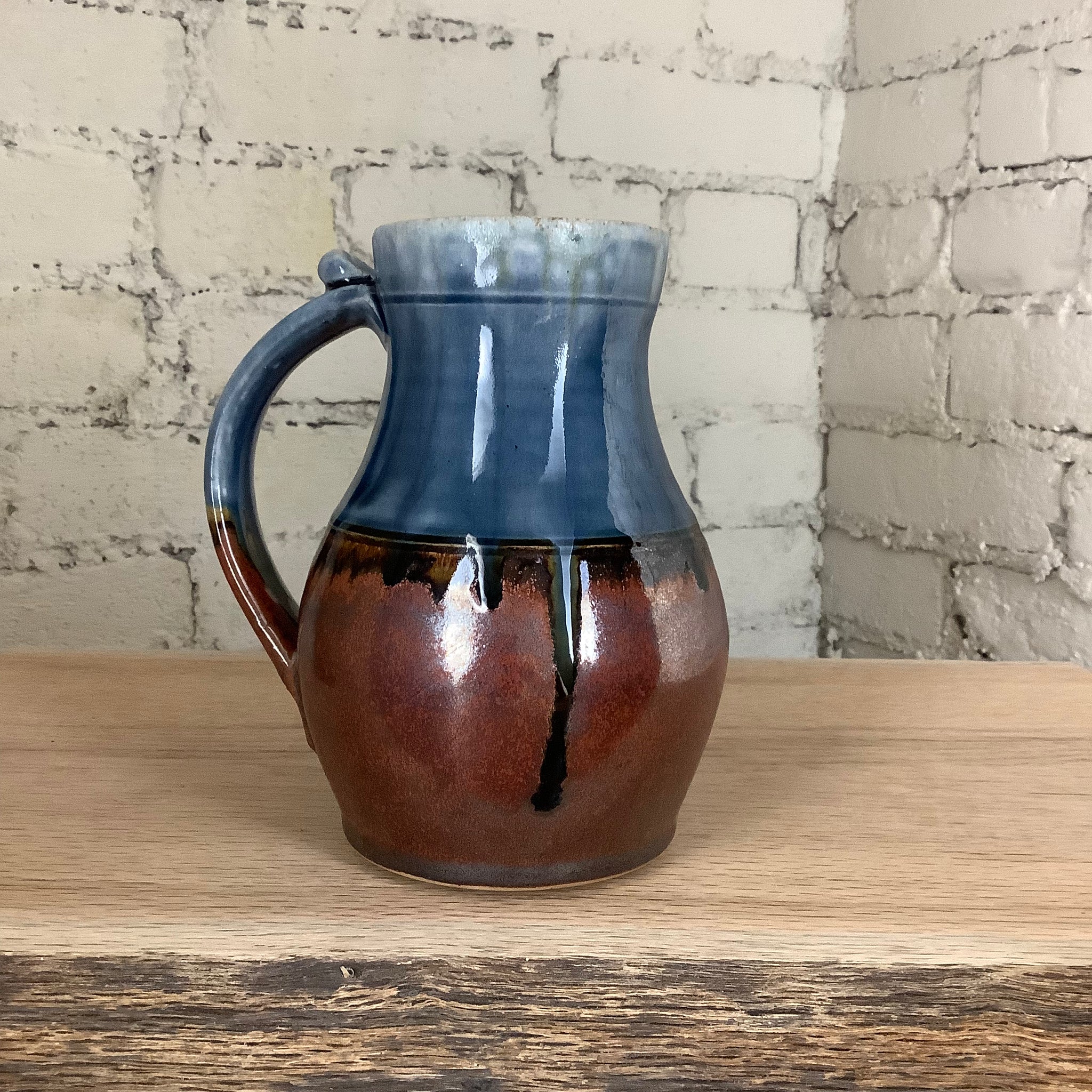 This piece was thrown on the potter's wheel, glazed by hand, and fired onsite in our gas kiln at Goshen’s historic Old Bag Factory. It stands 6.5” tall and 3” wide across the rim, with a 3.5" base. It holds about 26 ounces.