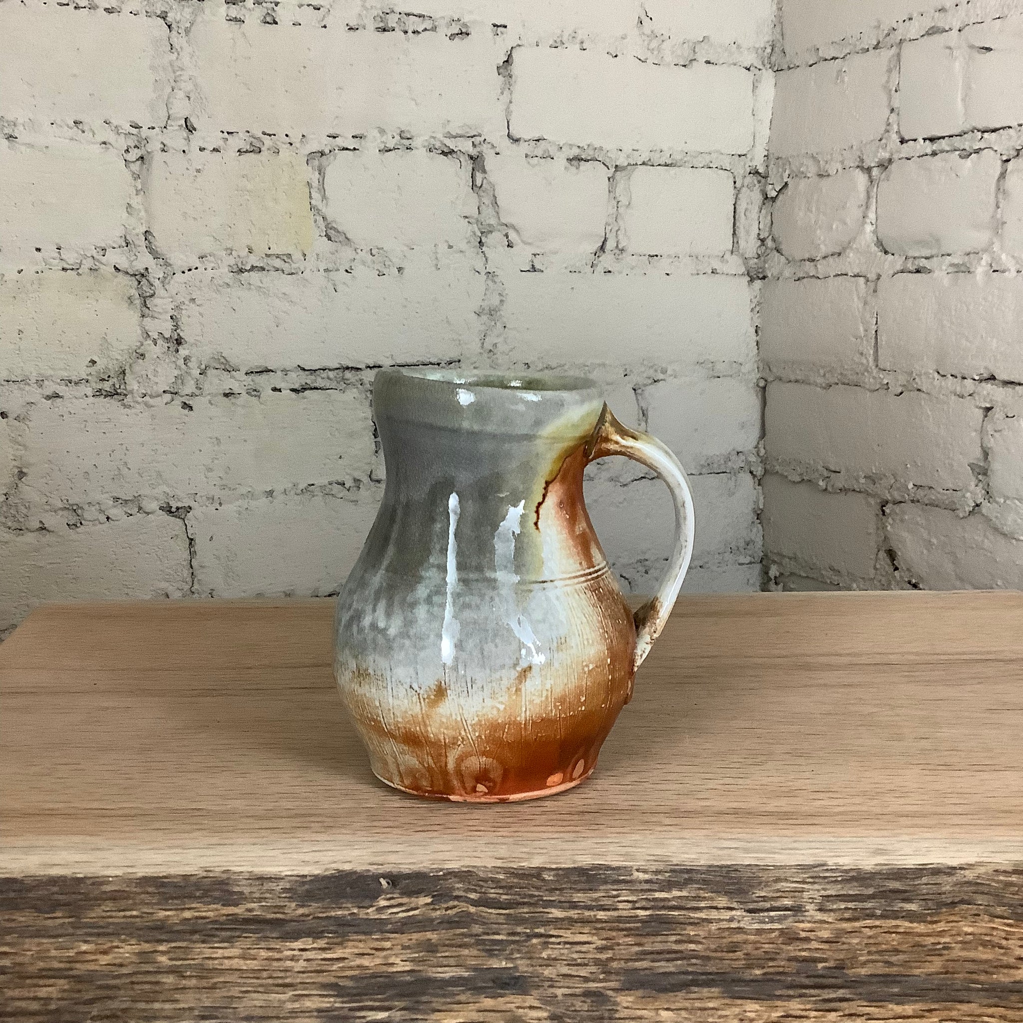 This piece was hand thrown on the potter's wheel and fired to 2400 degrees F using only wood. For more than 60 hours straight, the kiln was stoked every 12 to 15 minutes. The effects on the surface of this pot are a result of the kiln's flames flowing around the piece like water throughout the firing. Wood ash - a byproduct of the firewood used to stoke the kiln - is carried by the flames to accumulate on the surface of the pots, melt, and then harden to form a glaze.