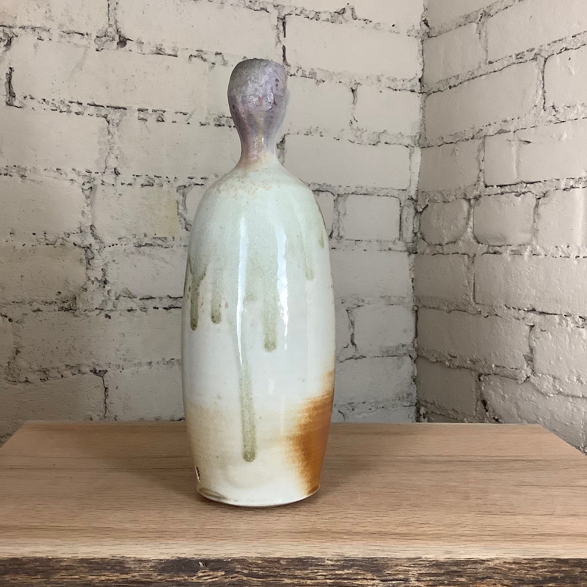 This piece was hand thrown on the potter's wheel and fired to 2400 degrees F using only wood. For more than 60 hours straight, the kiln was stoked every 12 to 15 minutes. The effects on the surface of this pot are a result of the kiln's flames flowing around the piece like water throughout the firing. Wood ash - a byproduct of the firewood used to stoke the kiln - is carried by the flames to accumulate on the surface of the pots, melt, and then harden to form a glaze.