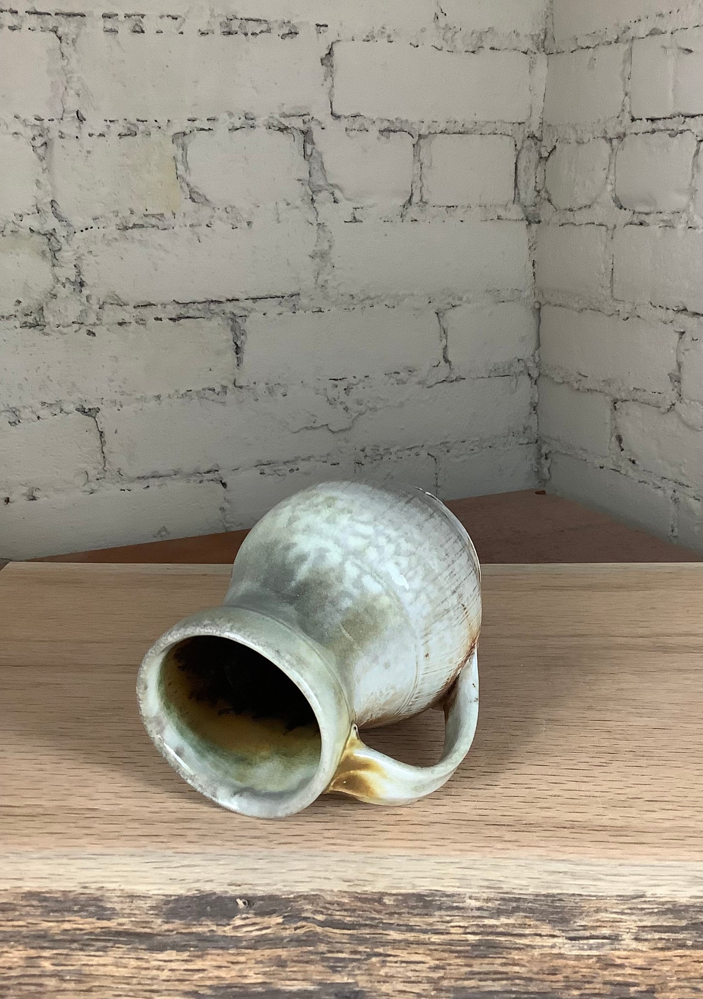 This piece was hand thrown on the potter's wheel and fired to 2400 degrees F using only wood. For more than 60 hours straight, the kiln was stoked every 12 to 15 minutes. The effects on the surface of this pot are a result of the kiln's flames flowing around the piece like water throughout the firing. Wood ash - a byproduct of the firewood used to stoke the kiln - is carried by the flames to accumulate on the surface of the pots, melt, and then harden to form a glaze.