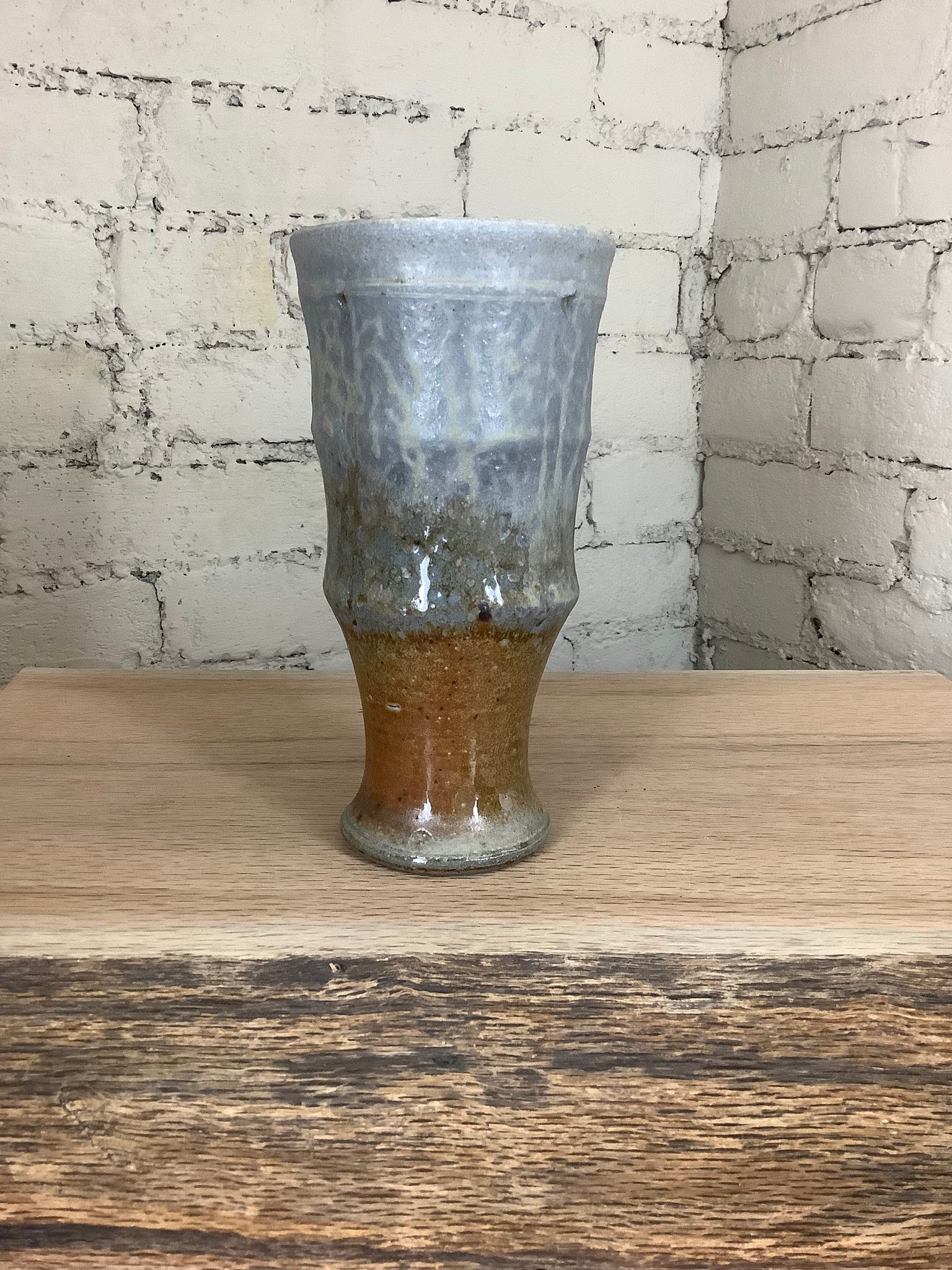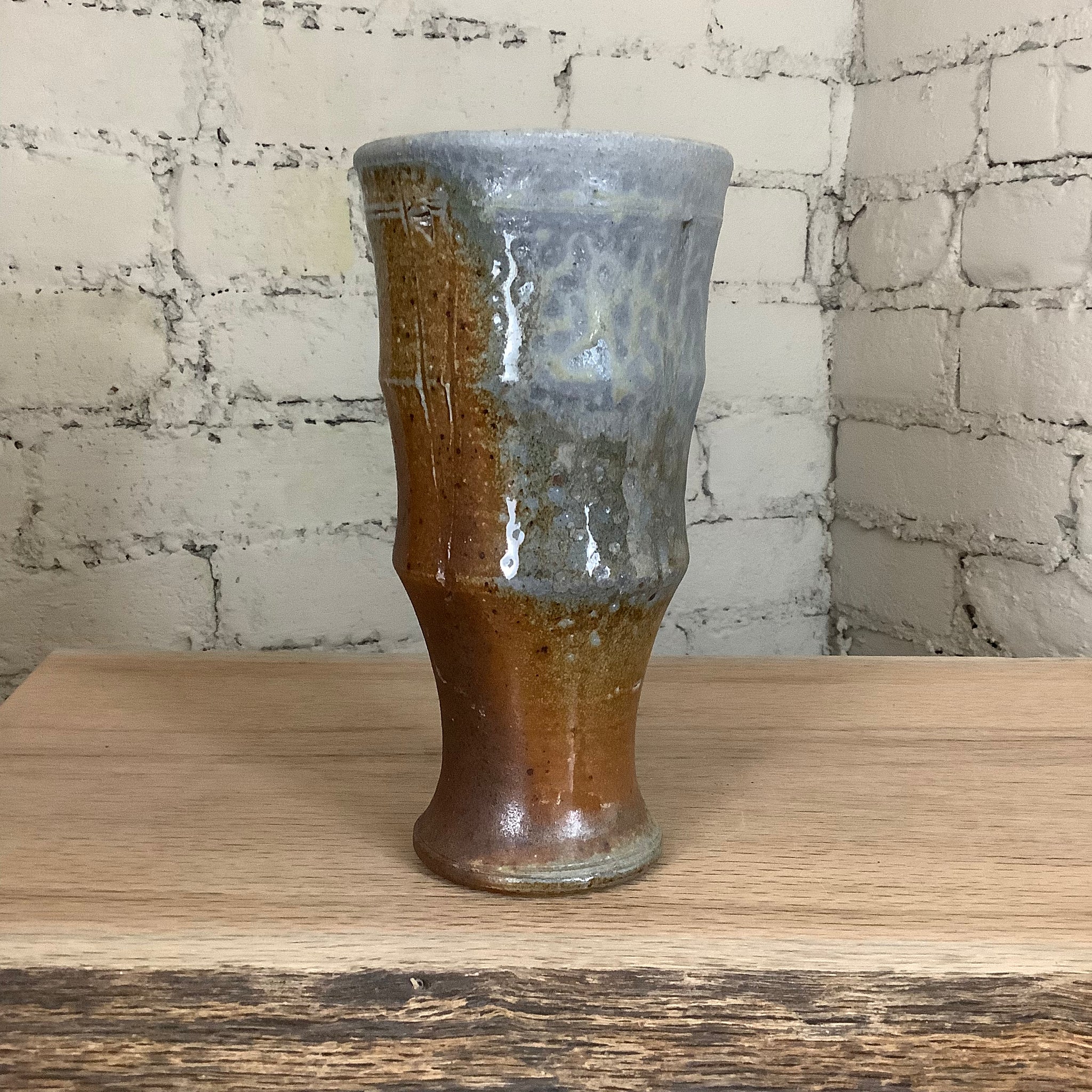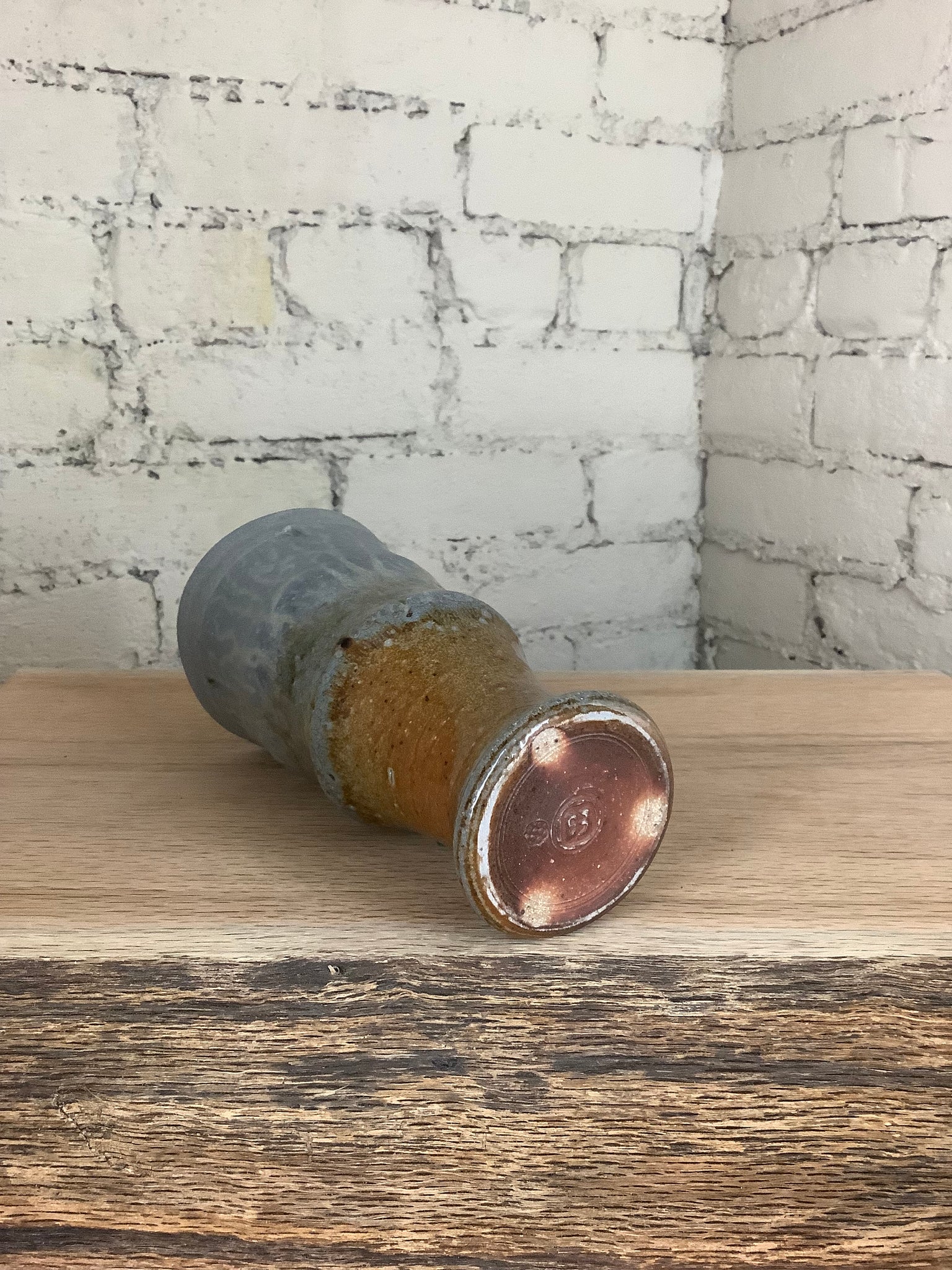 These pieces were hand thrown on the potter's wheel and fired to 2400 degrees F using only wood. For more than 60 hours straight, the kiln was stoked every 12 to 15 minutes. The effects on the surface of the pots are a result of the kiln's flames flowing around the piece like water throughout the firing. Wood ash - a byproduct of the firewood used to stoke the kiln - is carried by the flames to accumulate on the surface of the pots, melt, and then harden to form a glaze.